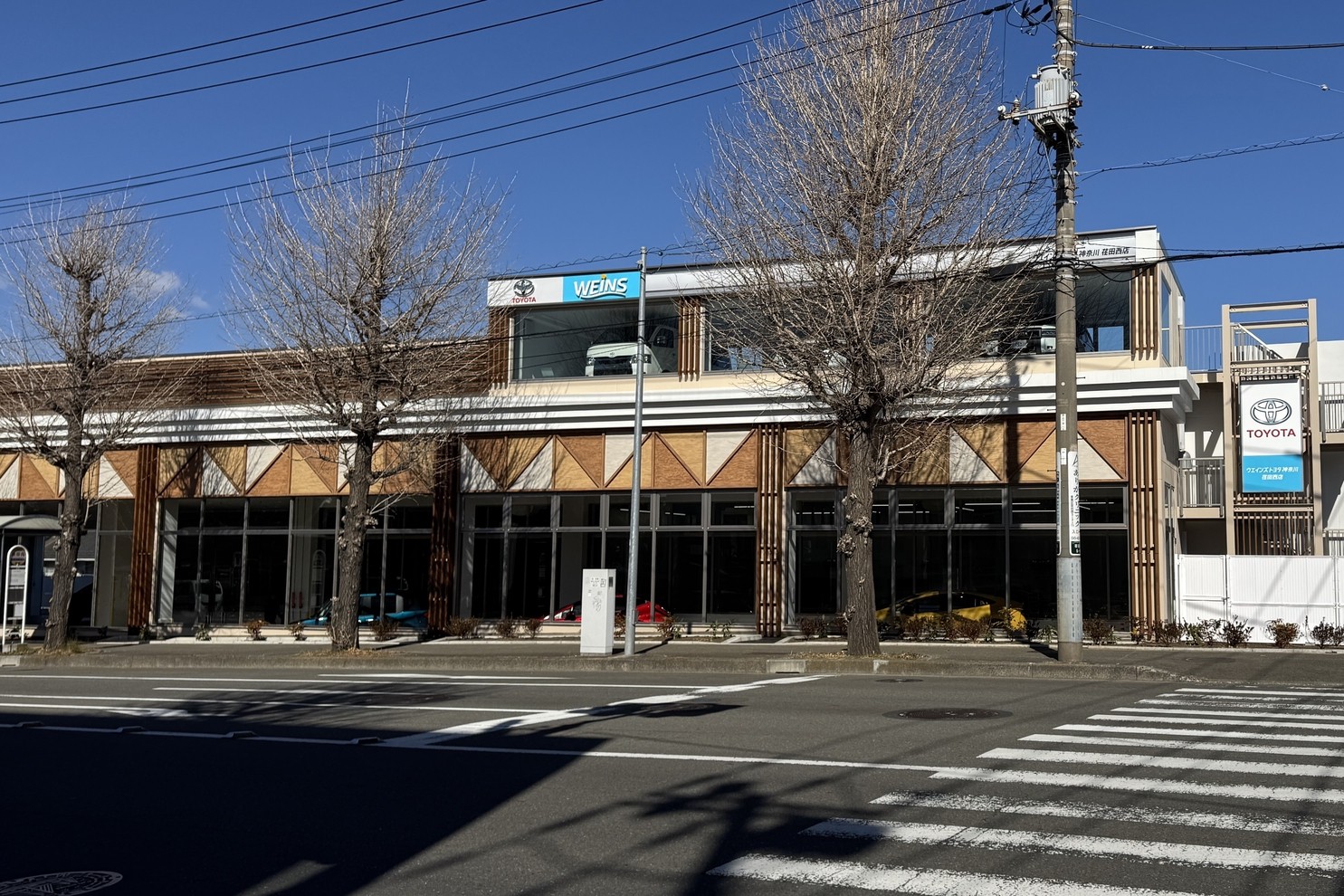 ニチコン製50kW器です。販社敷地入って右手、R246沿いに設置されてます。R246上り側のこの区間は、しらとり台交差点から2kmほど信号が無いのでなかなか車列が途切れません、出庫時要注意です。