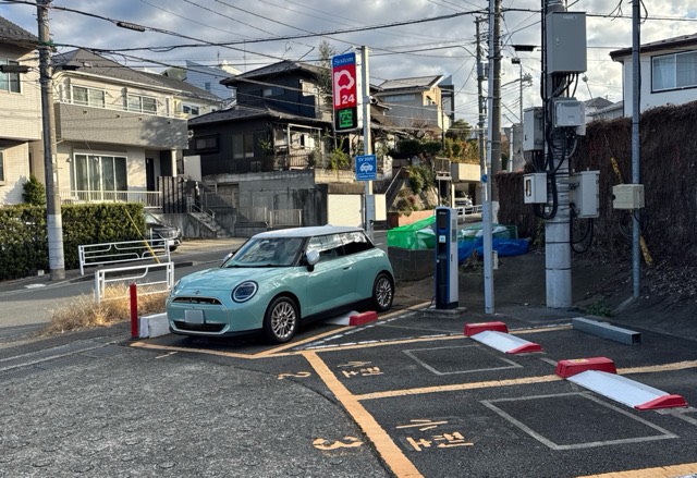 旧大山街道沿いのシステムパーク市ヶ尾第2に設置されてる普通充電器です。