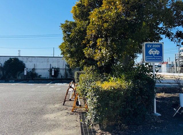 日東工業(株)製TerraChargeの6kW充電器×2器です。駐車料金は無料です。充電器は駐車場出口付近に設置されてます。