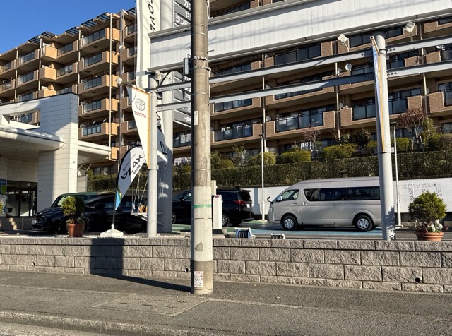 トヨタメディアサービス(株)製3.2kW普通充電器です。販社敷地入りすぐ右手、看板下に設置されてます。営業時間内で使用可能です。