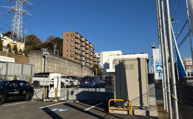 ABB製150kW×2口器です。ショールームからは離れたメルセデスベンツ側(南側)の駐車場に設置されてます。営業時間内で使用可能です。