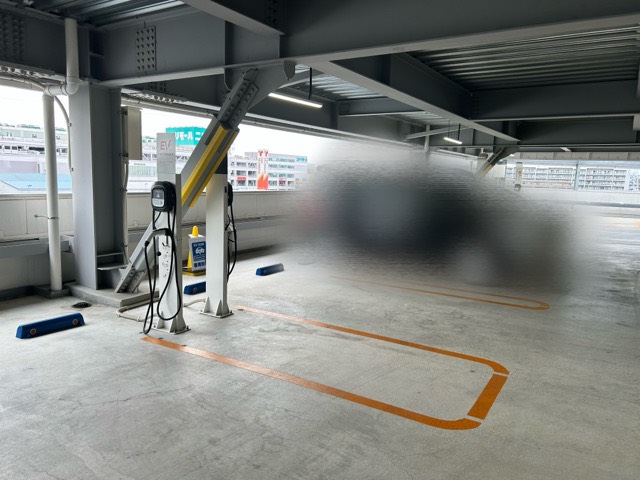 設置場所:第1駐車場の左奥にEV充電器があります。 最大出力6kW