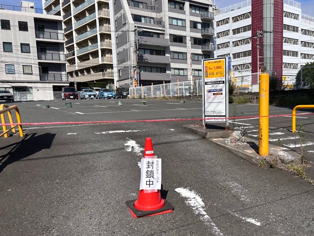 駐車場が封鎖中でした 10/15まで利用できないようです