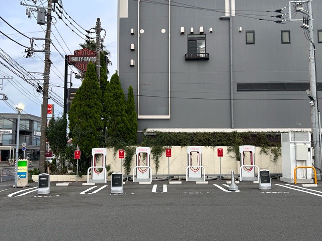 テスラスーパーチャージャーが4台設置されていました。 国道1号沿いのファミリーマート、加えてお盆期間中だったので充電しにきているテスラ車が多かったです。高速に近いのもいいですね!
