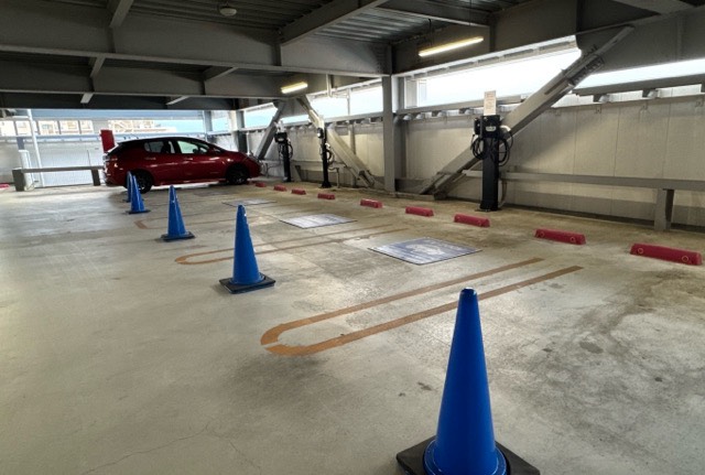 ENECHANGE認証 Zerovo Technologies製6kW器×6器です。立体駐車場5階北西部に設置されてます。コーンあるのでガソリン車は泊まってないです。平地駐車場出入口付近にあった普通充電器からの代替ですね!