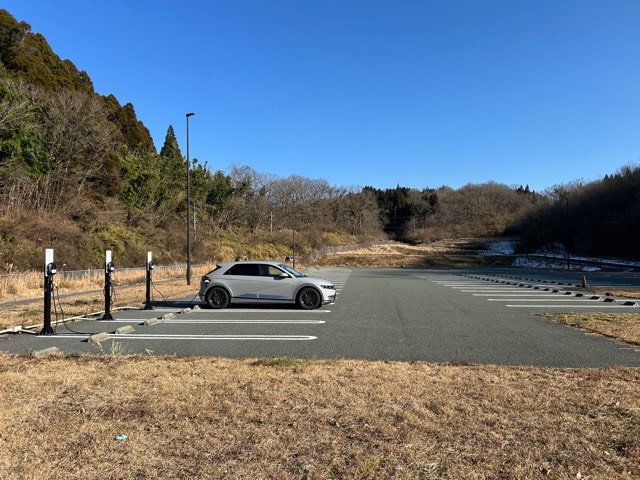 駐車場も広大ですし昼食には最適な場所ですね。 充電設備も50kwの実速は出ますし。 この辺りの速度がバッテリーにも優しく安心出来ます。