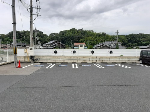 敷地に入ってすぐ左側にあります。 どうやら工事前に来てしまったようで・・充電器がないなと思っていましたが、公式の写真を見ると左の壁に並んでいます。 設置方法は、4つの充電器に対して5つの(さらに右側の車室に届けば6つ)の車室で使えそうです。 設置時に少し間隔を開ければ、この列で8つの車室ぐらいだと思いますが、この列の車室で使えるようにすれば、車室の下のマークも必要なくコーンなど0〜2つの最低限おけば十分で、後々楽だったとは思います。