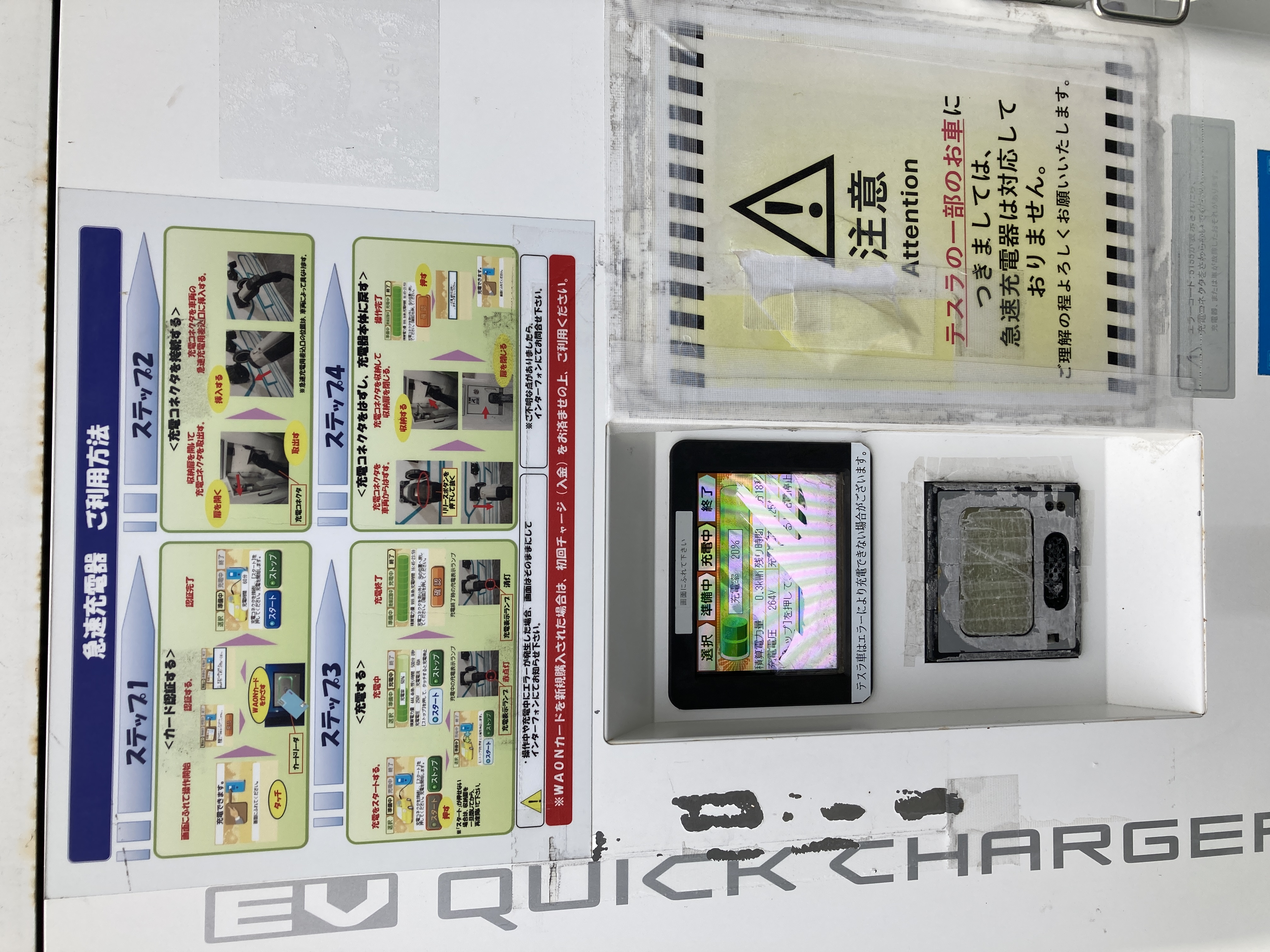 ずっと故障中だと思っていましたが、急速充電、今日使えました。普通充電器も使えるみたいです。急速充電は最初、テスラ充電のエラーが画面に表示されていましたが、画面をタッチしてたら最初の画面に戻り、充電できますと表示されました。 液晶が壊れていて、よく見えない。でも斜めから見るとかろうじて見えるので、その方法で、スタートとかストップを押しました。 やっぱり安くて助かります。隣の日産はビジター料金30分約3000円。。。桁違い。亀マーク出ながらもこっちに来て良かった。