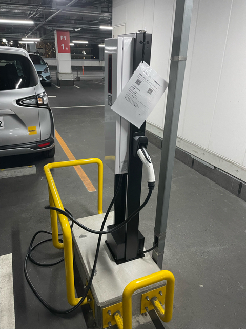 長らく使えなかったEV充電器ですがエネチェンジ専用機に更新されてました。