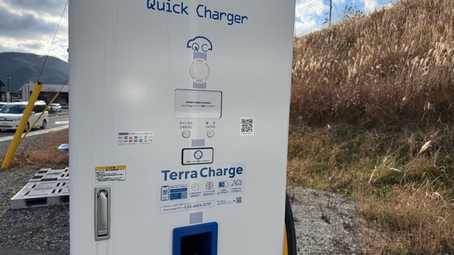 テラチャージ製の充電器です。石巻はテラチャージが多いので、利用する際はアプリを事前に準備した方が良さそうです