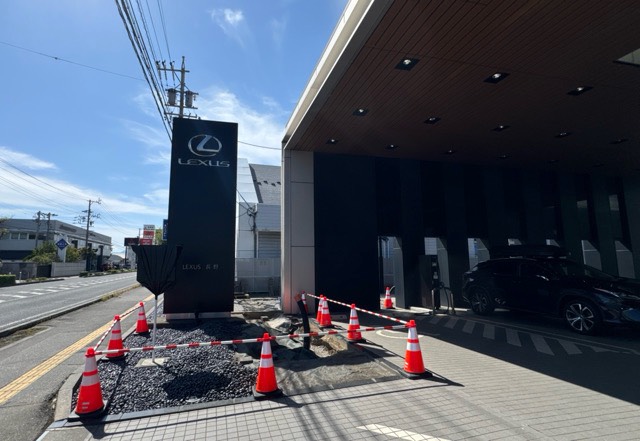 ニチコン製50kW器です。販社敷地入りすぐ左手屋根下に設置されてます。営業時間内で使用可能ですが、今後24時間使用可能な高出力器を設置するとのことでした。