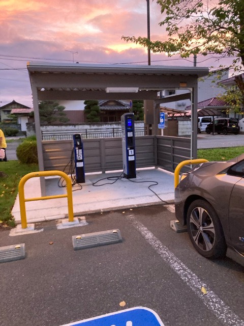 普通充電2台あります。 プラグをさして、充電カード認証、番号選択、1時間2時間、3時間、4時間選択すると充電開始します。 温泉ガス抜きタンクの前あたりです。