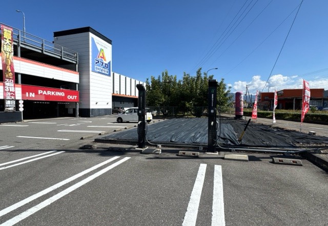 DMM EV ON認証PHIHONG TECHNOLOGY CO.,LTD製6kW充電器×2器です。店舗駐車場入りすぐ右手に設置されてます。