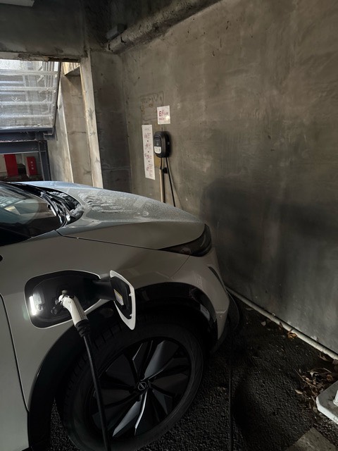 19時~9時は宿泊者限定、それ以外は一般の方も利用可能です。 設置場所:入口の門を入って左折後、すぐ右折した先の右側、駐車禁止スペース手前の車室にEV充電器があります。 最大出力6kW
