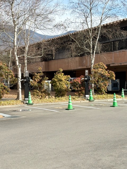常宿に充電設備が入ってくれたのは非常に有難い。 諏訪湖付近で満充電すれば10.5kw/hのこいつでも余裕でした。 今は雪深いから1台だけね。 因みに速度は3kwです。