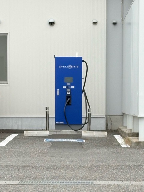 日産製44kW器です。販社敷地入りすぐ左手の通り沿いに設置されてます。転回スペースは確保されてます。