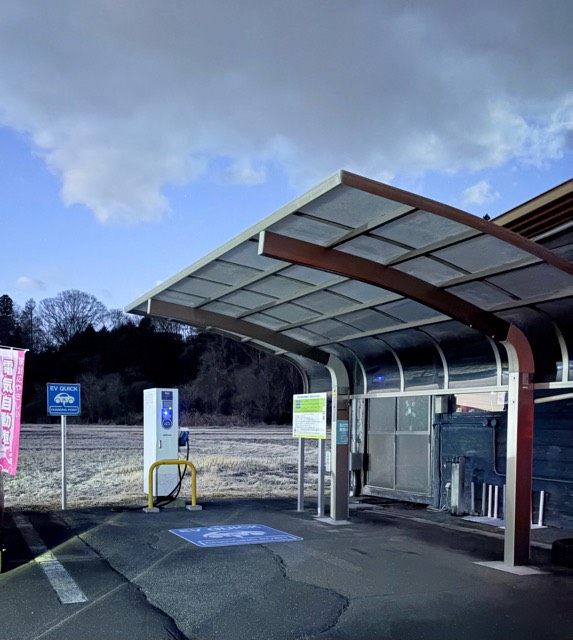 設置場所:国道153号線側の建物壁沿いの車室にEV充電器があります。 どなたでもご利用いただけます。 最大出力6kW