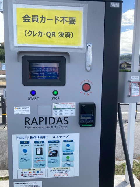 充電カード非対応です。 駐車場の真ん中あたりにあります。