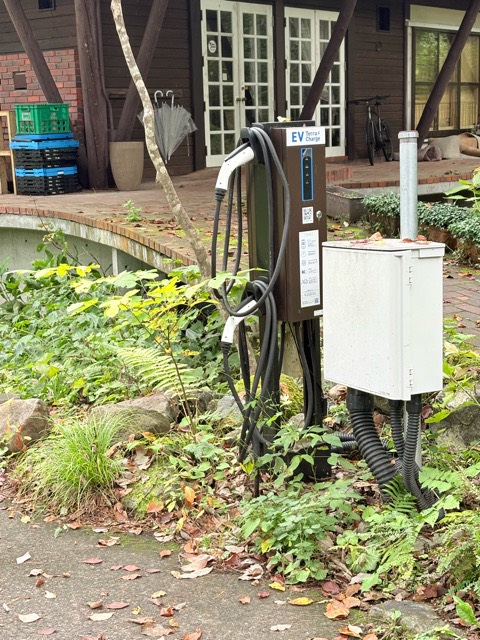 設置場所:村道2164号線よりホテル敷地内へ入り、左側の車室にEV充電器があります。 どなたでもご利用いただけます。 最大出力6kW