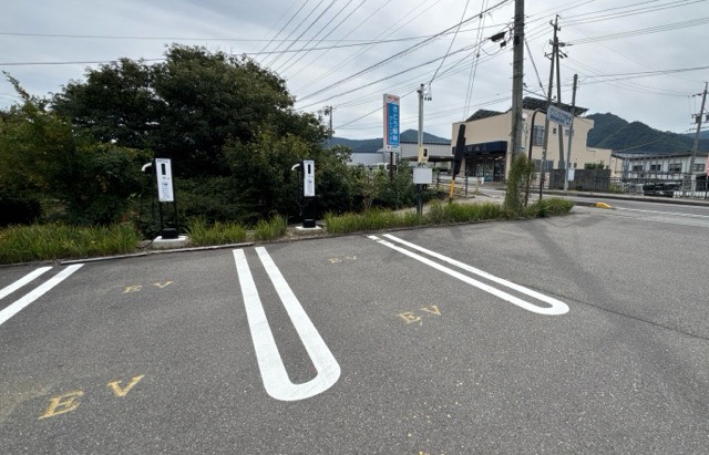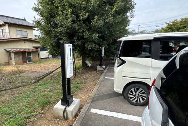 TerraCharge認証日東工業(株)製6kW充電器×2器です。店舗から離れた敷地南側に設置されてます。営業時間内で使用可能です。