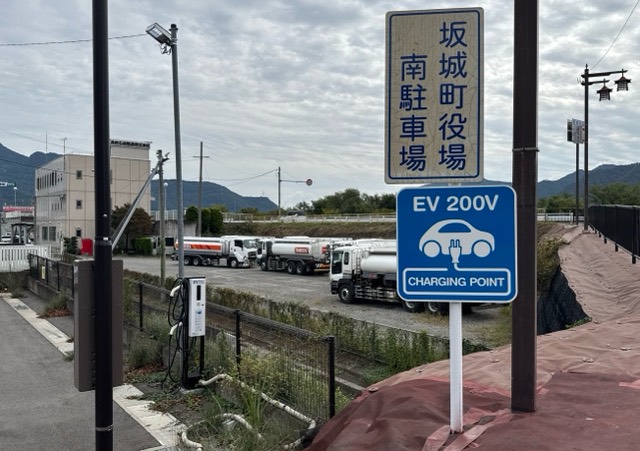 TerraCharge認証日東工業(株)製6kW充電器×2口器です。役場建物から離れたR18に近い南駐車場に設置されてます。(南駐車場は駐車枠が区画されてません)充電可能時間は開所時間とのこですが、電源OFFで無ければ使用出来そうです。