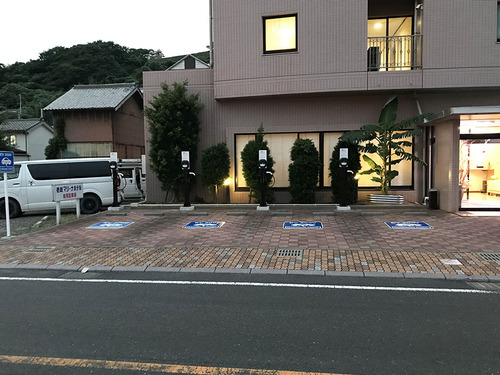 設置場所:県道141号線より敷地内へ入り、宿泊者専用レーンへ進みます。突き当りを右折し、直進すると三叉路の真ん中の駐車エリアにEV充電器があります。 どなたでもご利用いただけます。 最大出力6kW