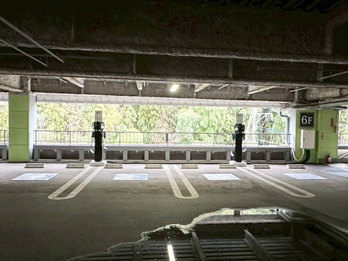 設置場所:建物入り口を正面に見て、左奥にある立体駐車場の1階にEV充電器があります。 どなたでもご利用いただけます。 最大出力6kW