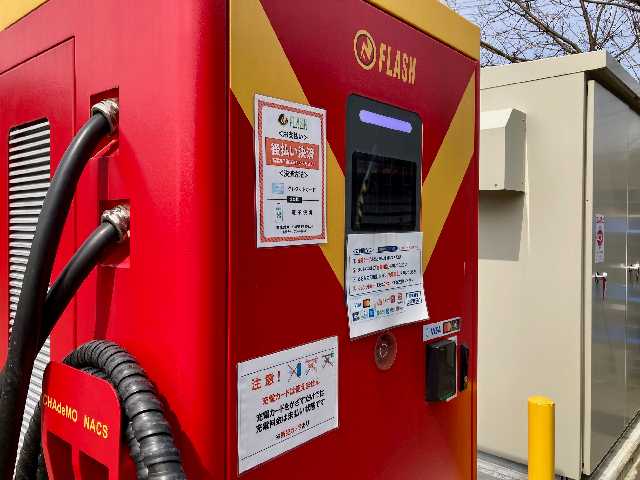 | 利用料金について | 充電有料。 クレジットカード決済または二次元コード決済 kWh従量課金制(44円/kWh) 充電終了後に決済をせずに3分経過すると1分あたり100円加算。 |