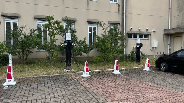 設置場所:第2駐車場 最大出力6kW 施設の電気容量により一時的に充電器の出力が変動する場合があります。