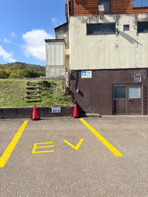 スキー場のゲレンデ沿いホテルで充電できるのはありがたいです。