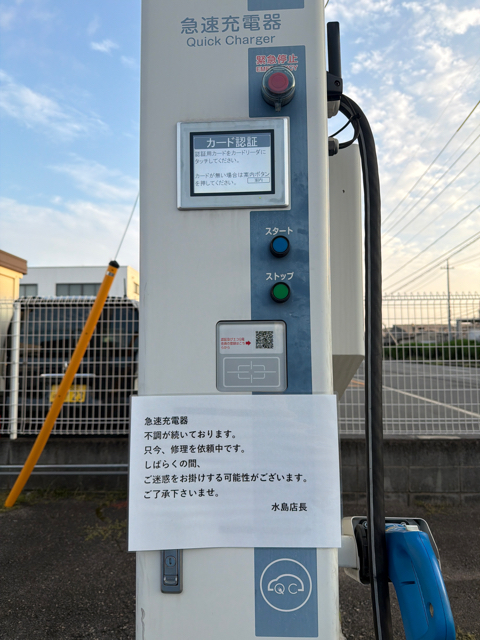 急速充電器は4基全てが基盤不良のため交換修理に6か月 掛かるので今現在充電できません