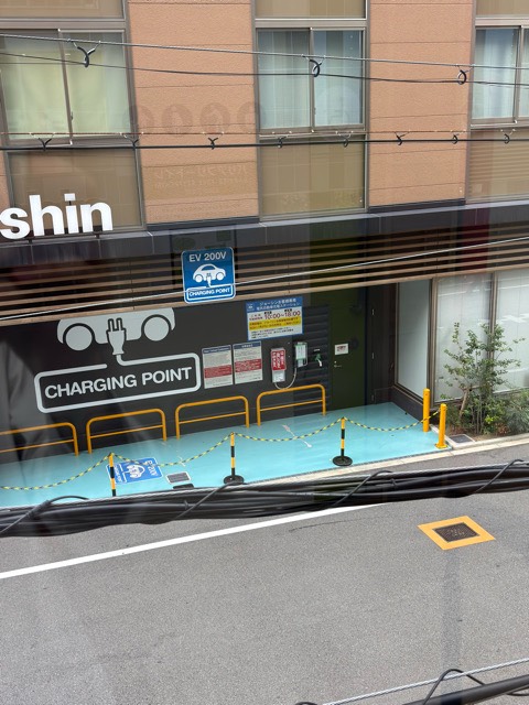 店舗とは別にある建物の壁にEV充電エリアが掘り込まれています。