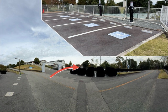 EV用普通充電設備は、R171から敷地に入って左前方の駐車スペースに設置されています。