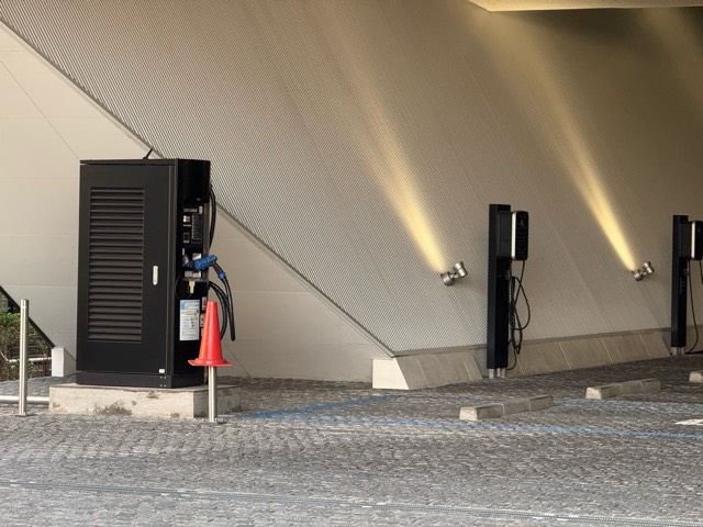 敷地に入って少し進むと左側にあります。 普通充電も並んでおり、壮観です。