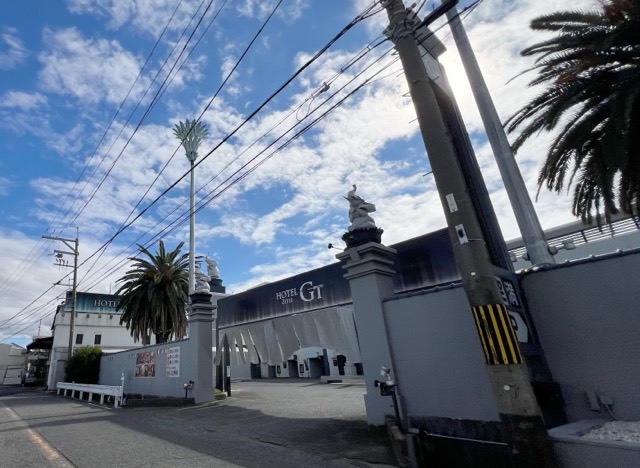 外観の雰囲気です。EV充電の標識は左側に立っています。