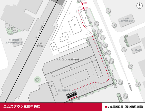 設置場所:立体駐車場4F [急速充電器] 夏季(5月下旬~9月下旬(時期は多少前後する可能性あり))・冬季は機器保護のため30kWに出力制限されます。 [普通充電器] 充電3時間までの範囲で選択可。