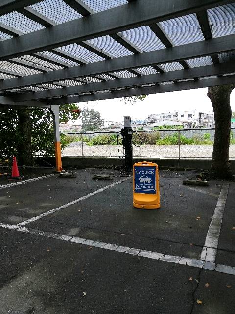 店舗出入口側に急速充電器があります。 屋根付きで雨の日も安心ですね。
