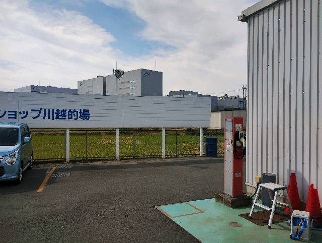 EV用普通充電設備は、サービスピットの奥に設置されています。 ニコニコレンタカー川越的場店でもあるので、レンタカーを借りている間に充電も出来ると思いますが、自転車ですら「預かり料金・駐車料金」を請求するお店なので、充電料金や駐車料金が発生する可能性が有ります。 (私は鉄道で出向いてレンタカーを借りたので、充電に関して確認はしていません)