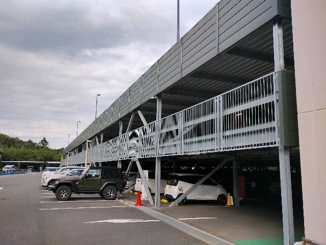 EV用普通充電設備は、宮沢湖入口交差点から敷地に入って右側の立体駐車場1Fに2台設置されています。 個人的には、エネパス対象のチャージ2充電設備が4台設置されたら便利なのに・・・と感じました。 「EV充電エネチェンジ」設置リクエストフォームからも設置リクエストしたので次回訪れた時には設置されているかな?
