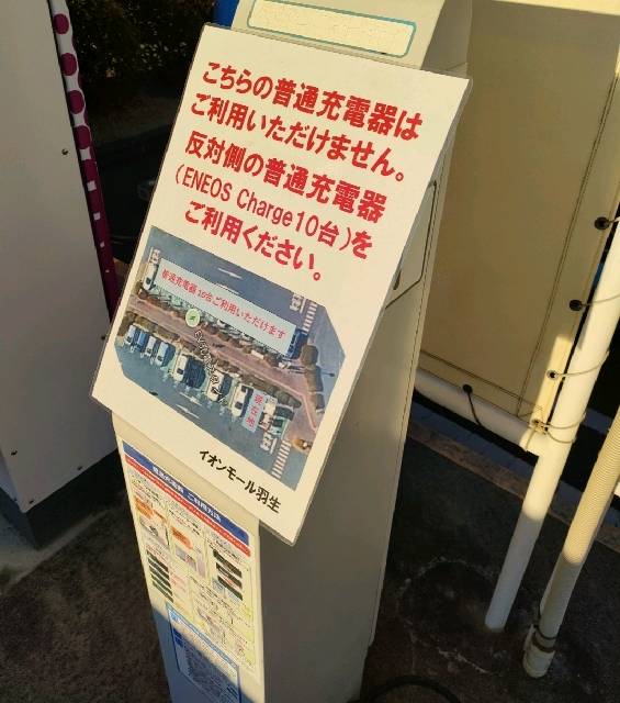 平面Pの急速充電器脇にある普通充電器は利用不可になっていました。