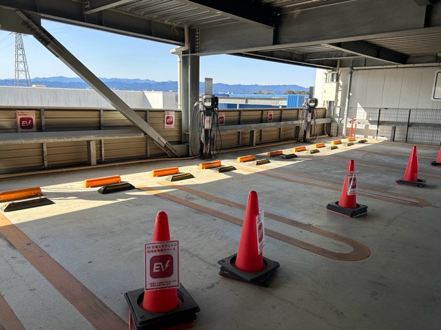 設置場所:立体駐車場3階 最大出力6kW 施設の電気容量により一時的に充電器の出力が変動する場合があります。