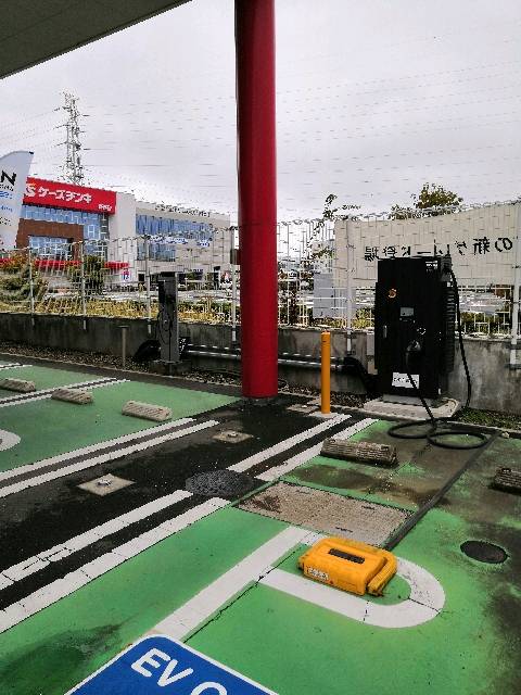 店舗出入り口の右側に急速充電器と普通充電器が各1台ずつあります。