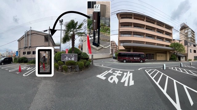 設置場所:県道558号(高島大津線)からおごと温泉の信号を平井マンションの側道へ曲がり、駐車場に入ります。直進左側にある「おごと温泉 湯元舘」の看板手前、14番車室にEV充電器があります。 最大出力6kW