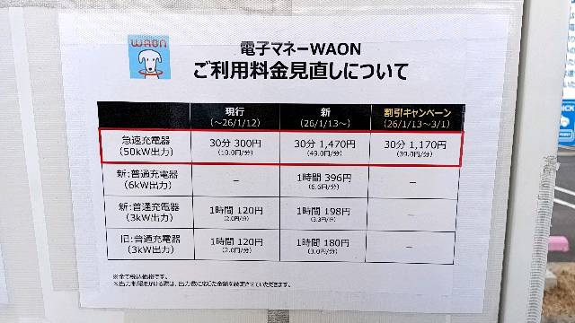 ★オフィシャルサイトより確認★ 2026/01/13(火)~2026/03/31(日)の間、イオンペイ・電子マネーWAON支払いの割引キャンペーン実施中 急速充電 10 分の場合100 円引き、急速充電 20 分の場合200 円引き、急速充電 30 分の場合300円引き