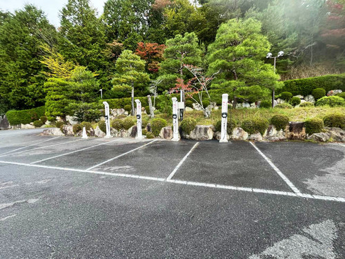 設置場所:入り口より道なりに進んだ先、クラブハウス前ロータリー付近の駐車スペースにEV充電器があります。 どなたでもご利用いただけます。 最大出力6kW