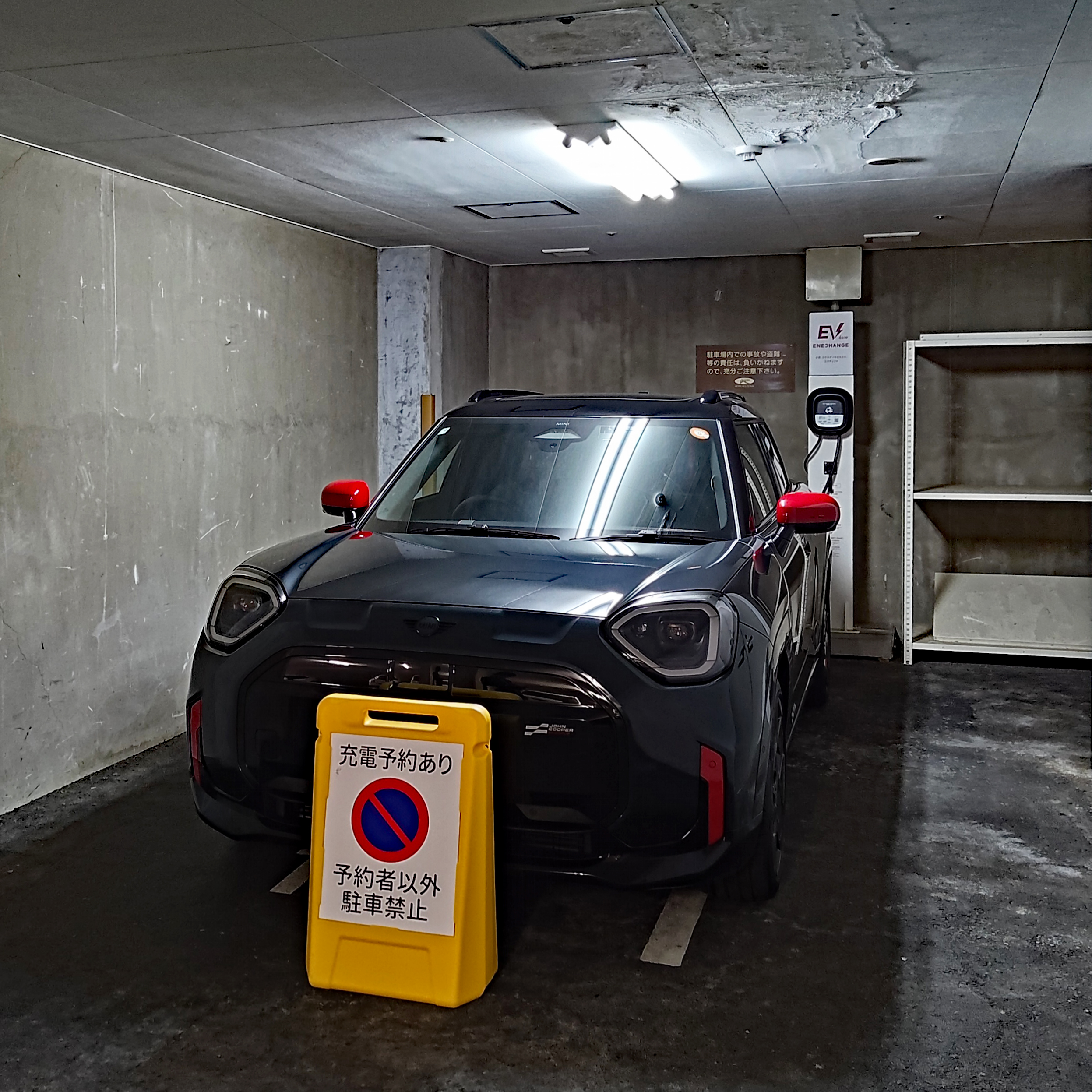 ■利用日時:2025年10月21日 15:16 ■充電時間:366分 ■充電電力量:35.4kWh ●車はMINI JCW ACEMAN E、充電カードはMINI Chargingを使用。全く問題なく大変スムーズに充電できた。 ●ホテルが用意している宿泊者専用充電予約サイトから事前予約したので、競合・待ち時間等無く、ホテルチェックイン直後から大変スムーズに充電することができた。なお、充電ケーブルは事前に解錠いただいていたのか施錠されておらず、充電開始前・終了後にホテルフロントへの連絡は行わなくても大丈夫だった。 ●充電駐車区画は決まっており、上記予約サイトでも詳細説明されている。また、実際の場所にも「充電予約あり/予約者以外駐車禁止」の樹脂スタンド看板が目立つように設置されており、充電車両以外の駐車防止を取っている。区画代理が狭く、入出庫時は注意が必要。 ●充電器は普通充電のENECHANGEのチャージ2(6kW)。3kWではなく6kW出力のため、よりストレスなく高速に充電できる。
