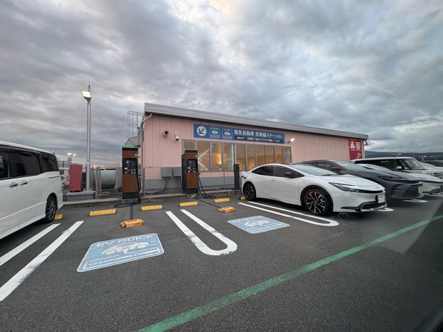 プラゴ認証の普通充電器と急速充電器です。 6kW普通充電器①〜③:(株)プラゴ製 50kw急速充電器④⑤: 新電元工業(株)製 事前にプラゴ入会しておけば、1時間予約出来ます。(但し、予約して使わないとキャンセル料取られます)屋上P上がりすぐ右手の店舗出入口建物前に設置されてます。
