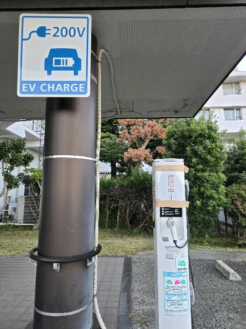 夜、工事をしていない間は充電器の使用は可能とのことです。ただし、充電スペースが工事車両置き場になっているため、朝8時前までに車を移動しなければなりません。