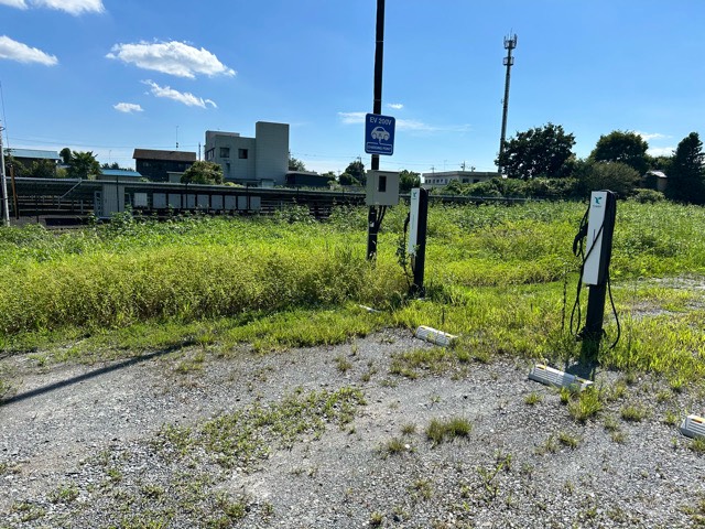河村電器産業株式会社の6kw普通充電器が2台、駐車場中央付近に設置されていました。empカードなどは使えず、利用の際はtreevアプリをインストールする必要があります。色々な充電認証アプリが登場し、充電スポットごとにアプリをインストールするという手間が発生してしまうので、利便性を高めるためにも統一化をお願いしたいと思いました。またこの充電器周辺に雑草が繁茂しており、写真奥の充電器には雑草が絡まっていました。