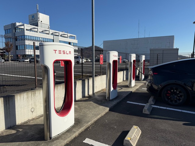 最大130kwのテスラスーパーチャージャーが4台設置されていました。